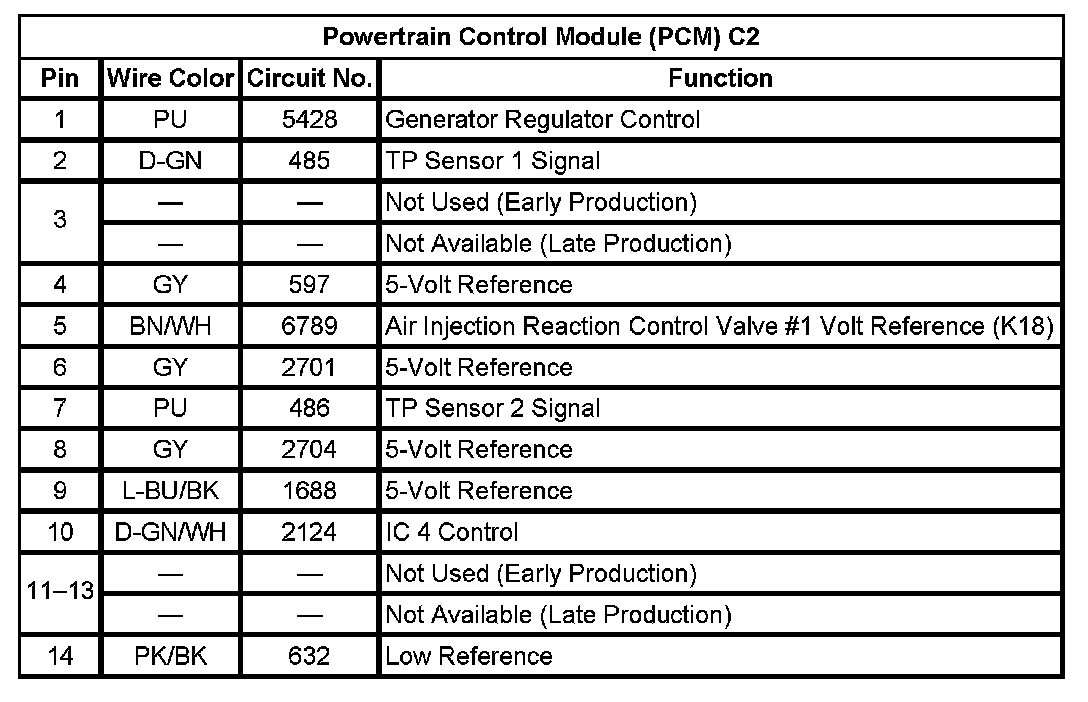 Powertrain Control Module (PCM) C2 (Pin 1 To 14):