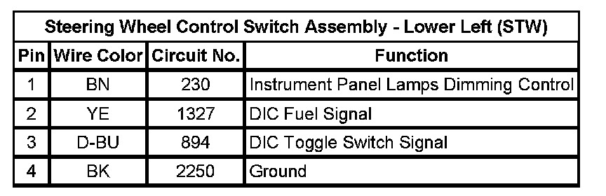 Steering Wheel Control Switch Assembly - Lower Left (STW)