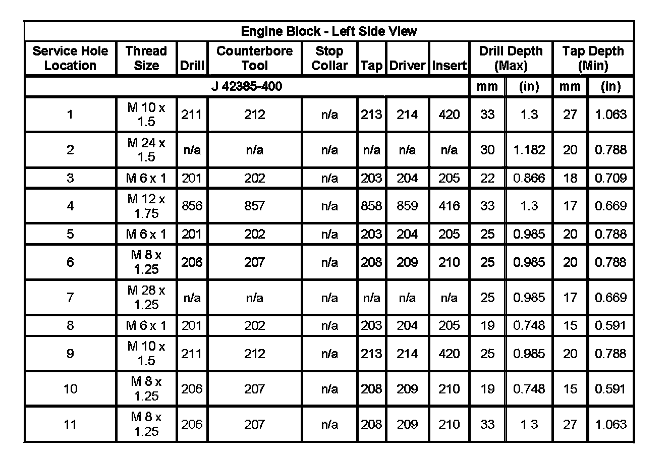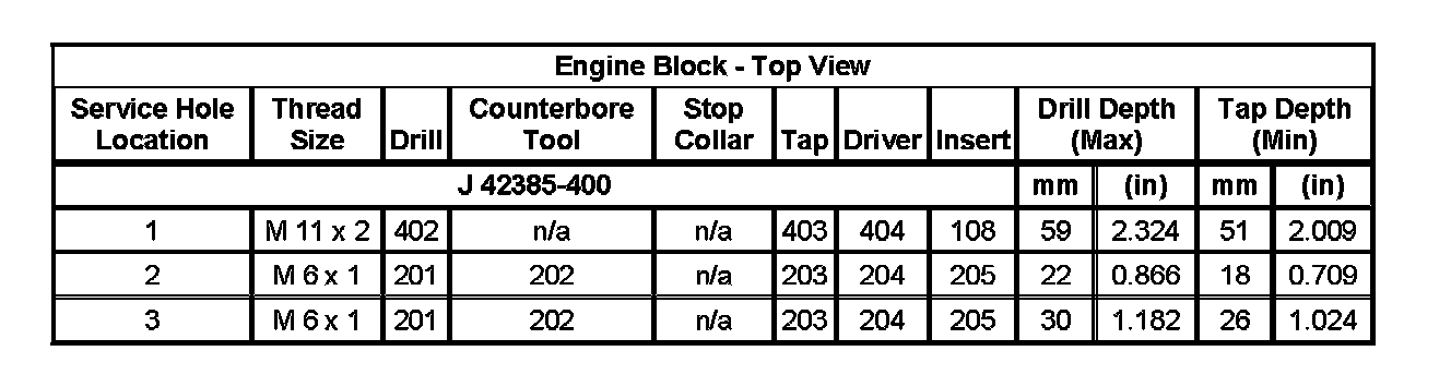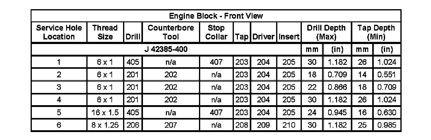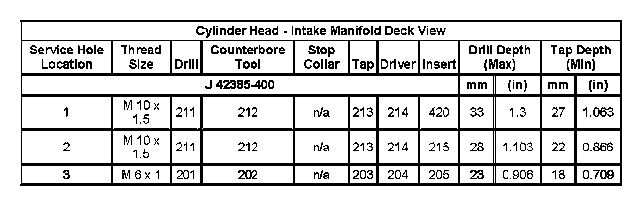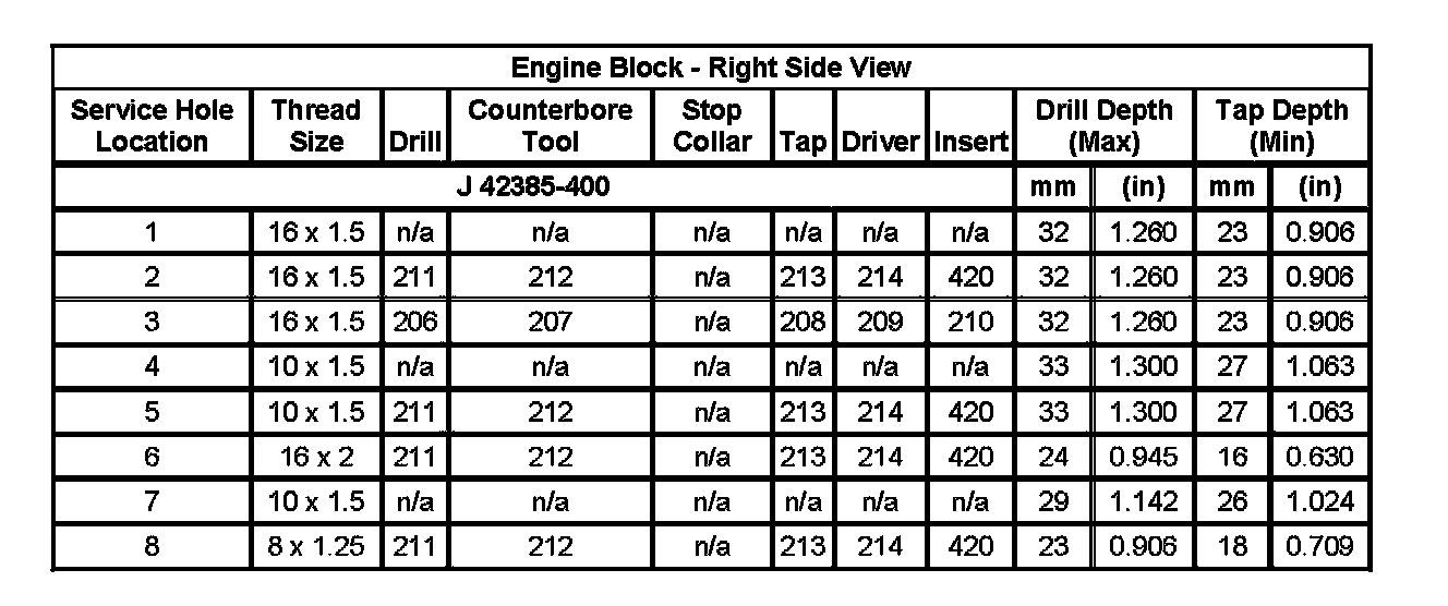Home >> Isuzu >> 2007 >> Ascender 2WD L6-4.2L >> Repair and Diagnosis >> Engine, Cooling and Exhaust >> Engine >> Specifications >> Thread Repair Specifications
