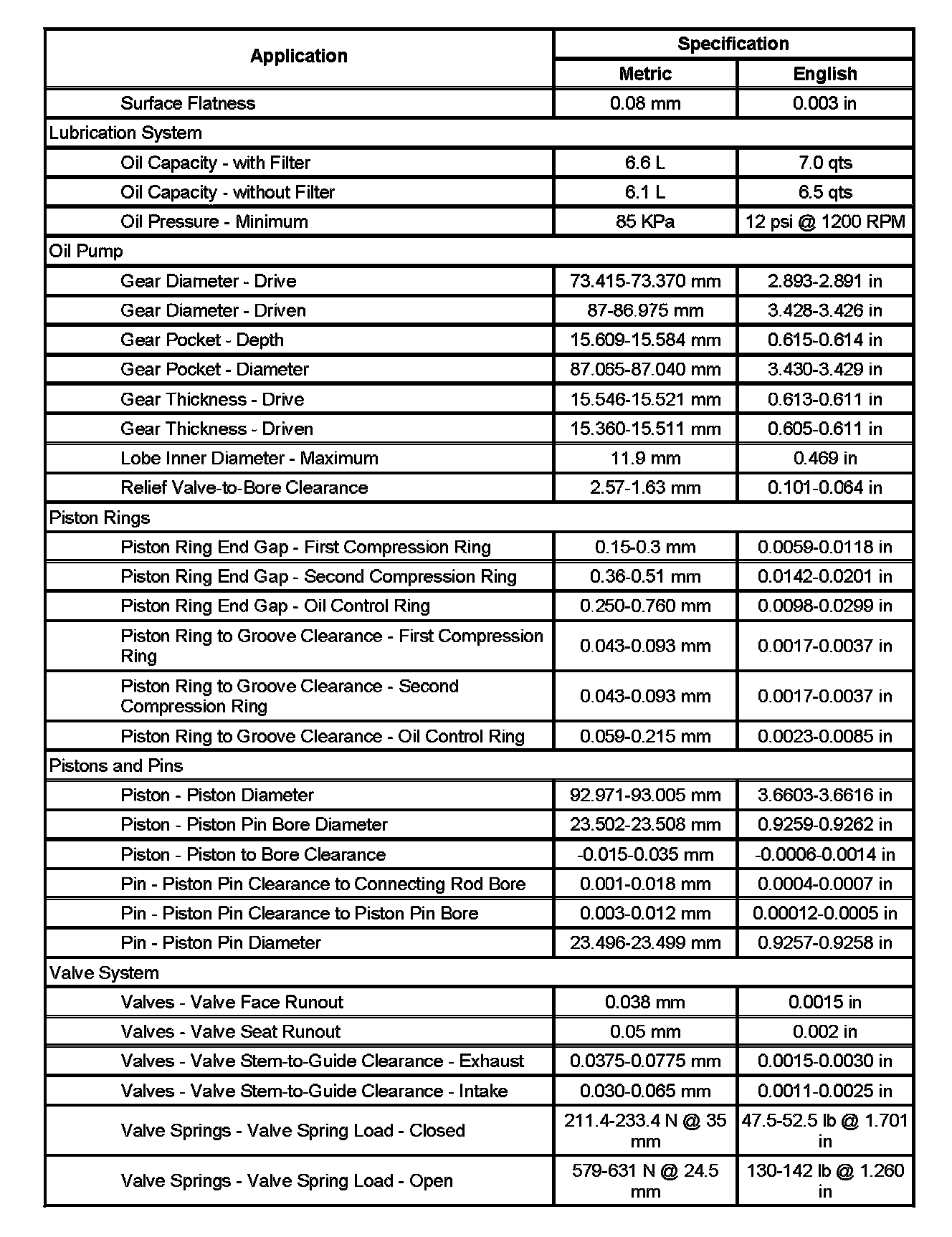 Engine Mechanical Specifications: