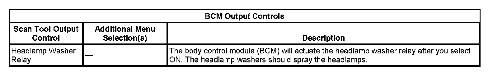 BCM Output Controls: