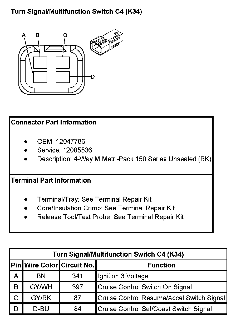 Turn Signal/Multifunction Switch C4 (With RPO Code K34):