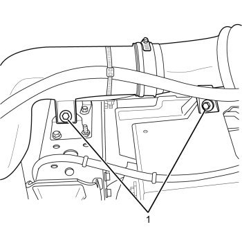 2. Remove the two fasteners (1) securing air intake duct to the chassis.
