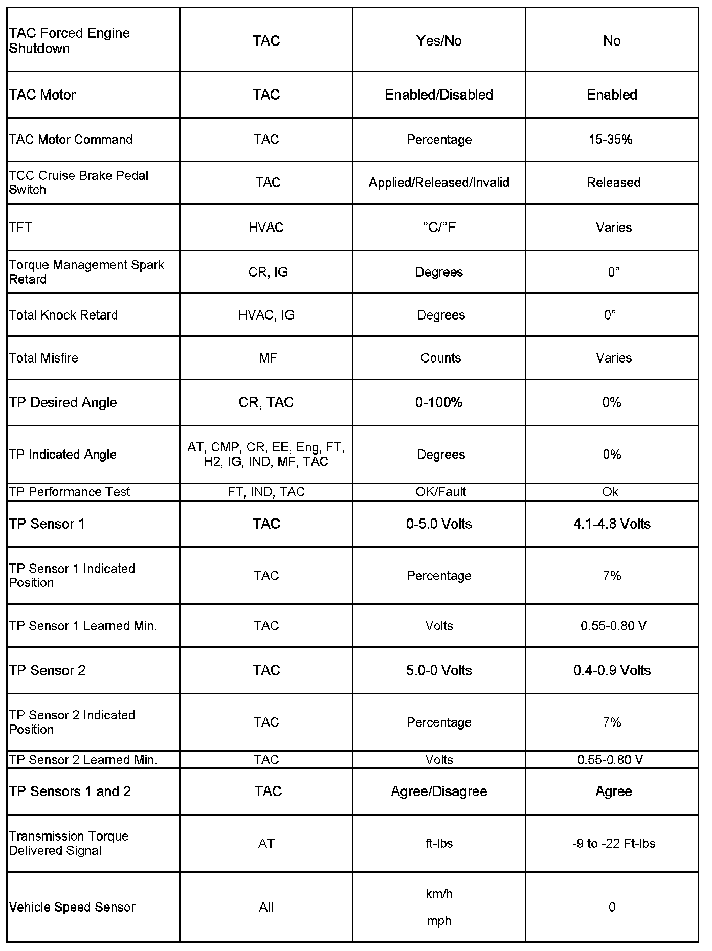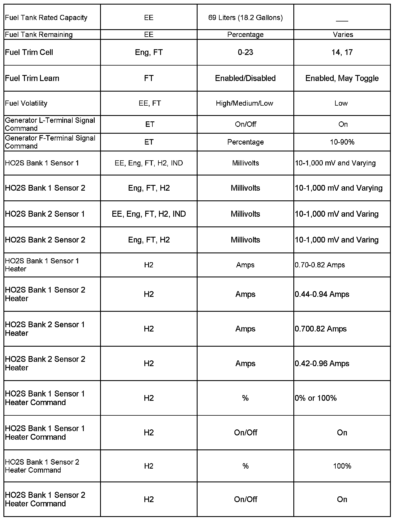 The column labeled Data List indicates where a parameter can be located on the scan tool. Refer to the scan tool operating manual for the exact locations of the data lists. The following is a description of each term listed: