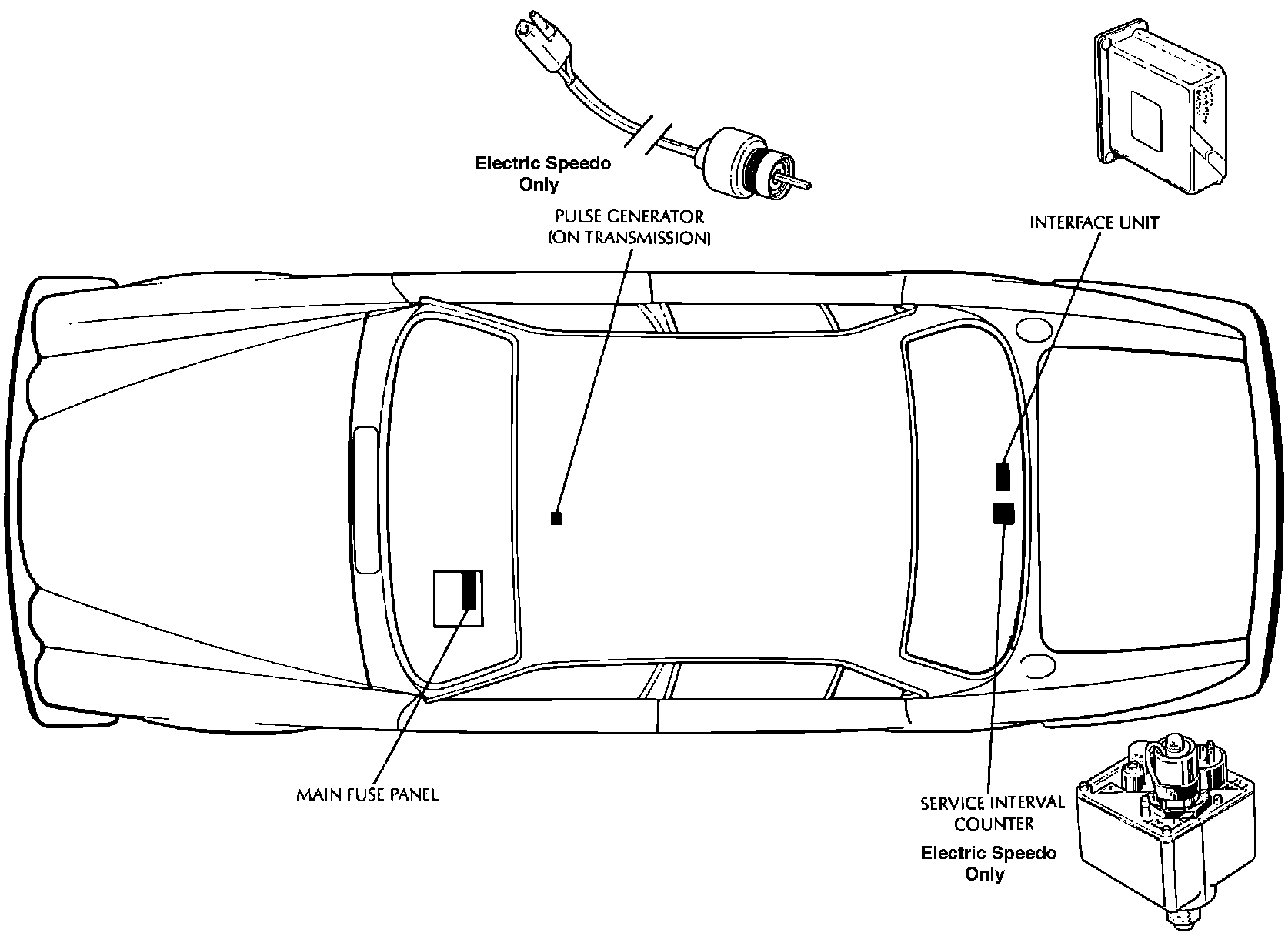 Pulse Generator, Service Interval Counter, Trip Computer Interface Unit Component Locations: