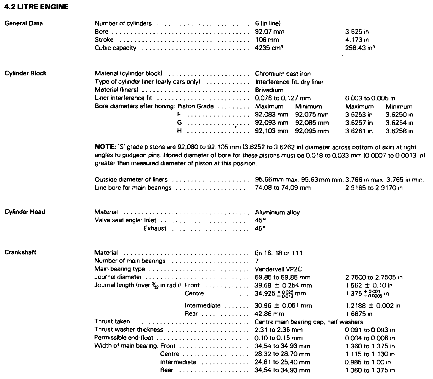 Cubic capacity 4235 cc (258 cu in)