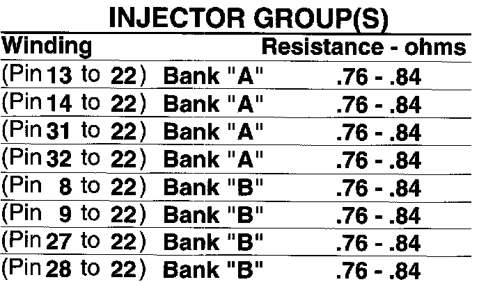 CAUTION: When measuring ohms, disconnect the ECU from the harness plug and never turn the ignition key on. It is possible that failure to follow these steps will result in damage to the ECU.