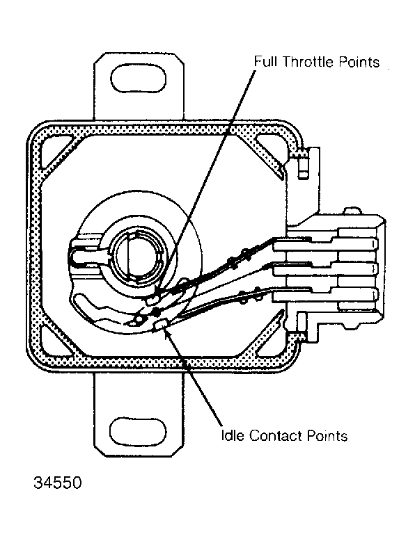 A contact type throttle switch is installed on throttle chamber. The throttle switch sends information on throttle position to ECU. On the contact switch, signals are sent when throttle is at idle or full throttle positions. See Figure .