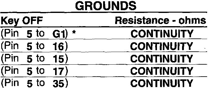 CAUTION: When measuring ohms, disconnect the ECU from the harness plug and never turn the ignition key on. It is possible that failure to follow these steps will result in damage to the ECU.