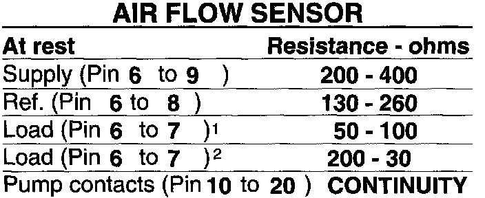 1 Flap on air flow sensor closed or air tiow senor plate at rest position. Resistance increases as flap or plate opens.
