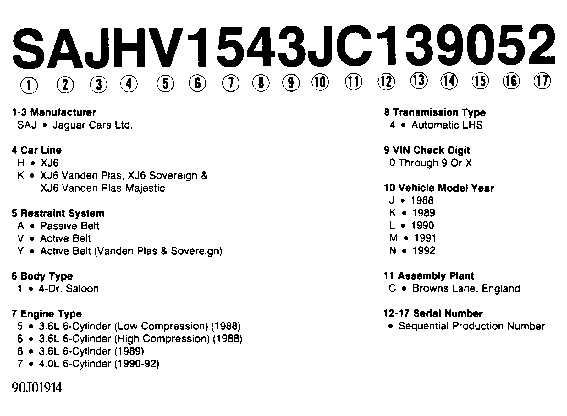 Home >> Jaguar >> 1988 >> XJ6 Base >> Repair and Diagnosis >> Engine Performance >> Application >> Engine/VIN Id >> Model Identification >> VIN Code Id Explanation >> Notes