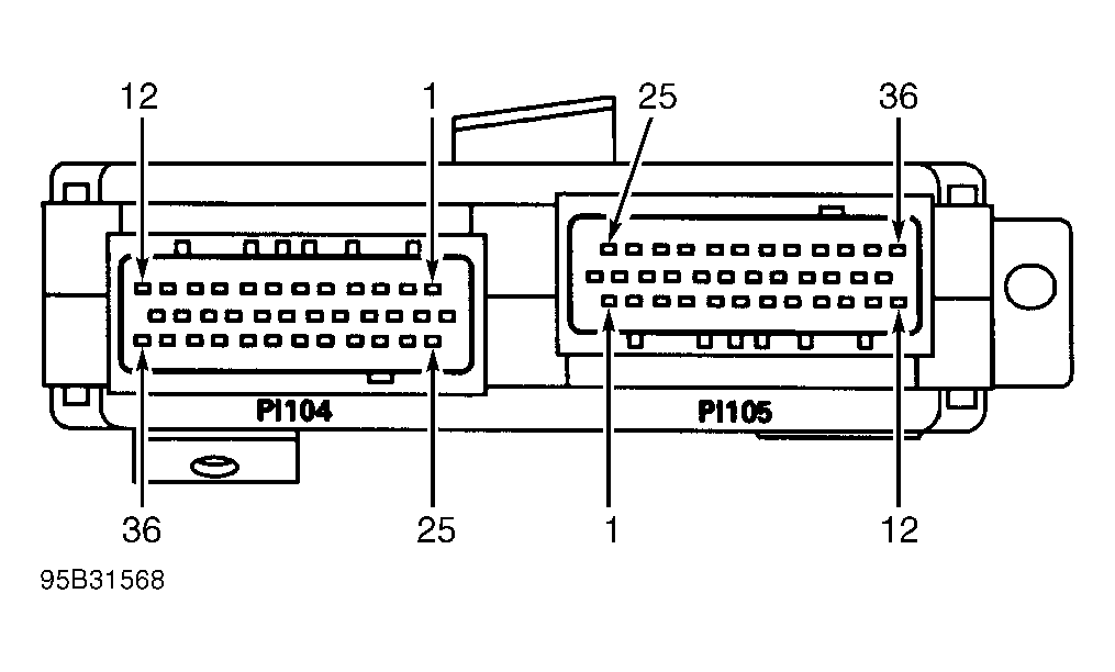 For DLC and PCM connector terminal identification, see illustrations. See Fig 1 and Fig 2 . DO NOT backprobe PCM when testing. Place tester probe into contact with terminal, from terminal side of wiring harness connectors in engine compartment. DO NOT puncture wire insulation. For female connectors, just touch terminal lightly with tester probe. DO NOT insert probe into terminal.