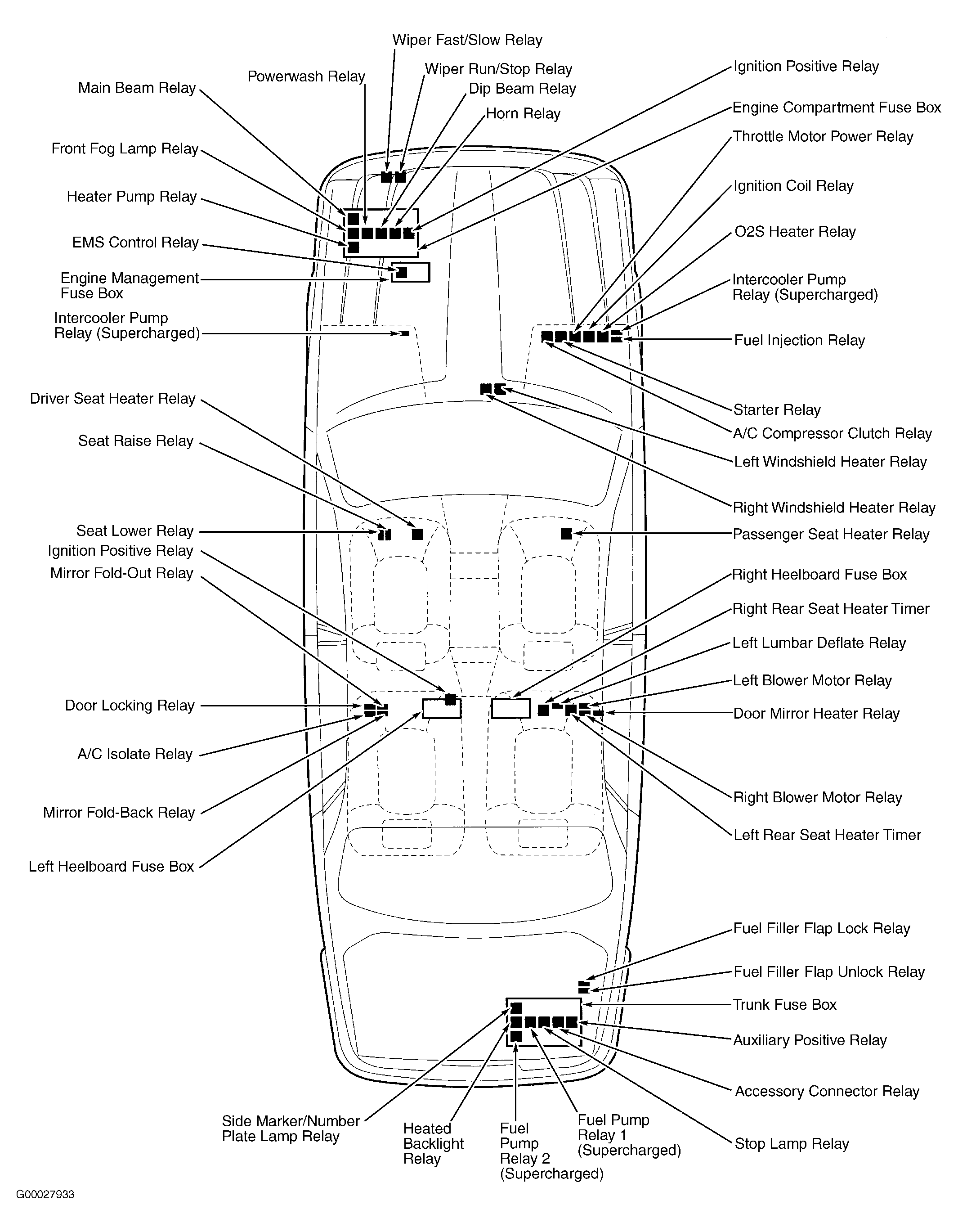 | Left Heelboard Fuse Box | Under front of left rear seat bottom. See Figure . |