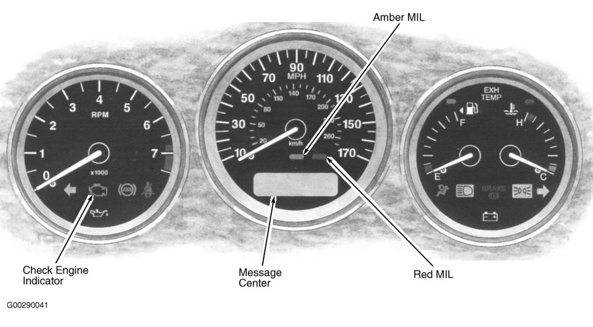- Verify customer concern. Confirm which, if any, warning lights and/or messages were displayed on the instrument cluster. See Figure.