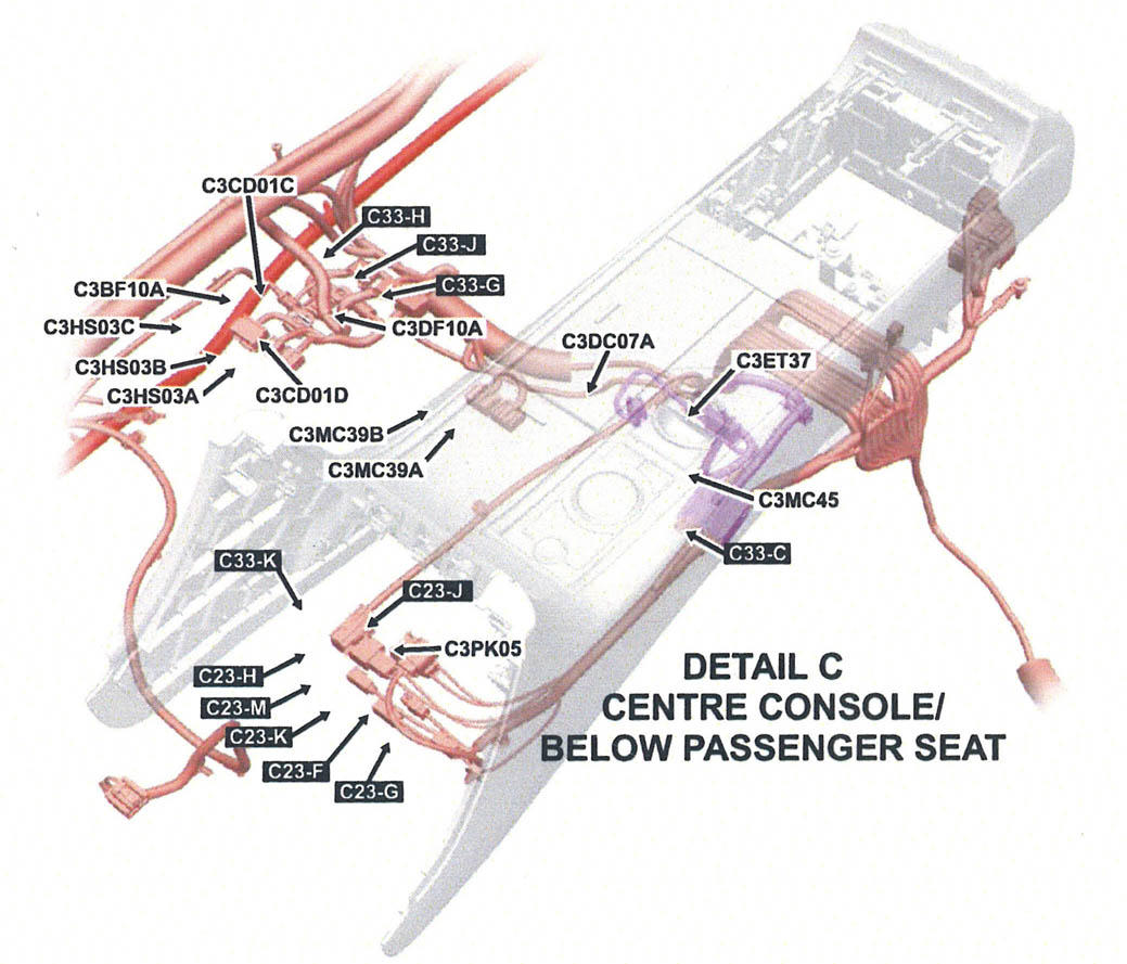 | Transmission Shift Module (C3ET37) | Under center console. See Figure. |