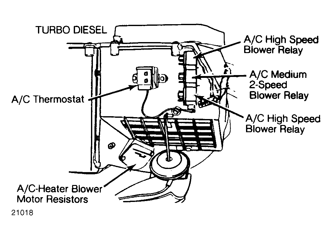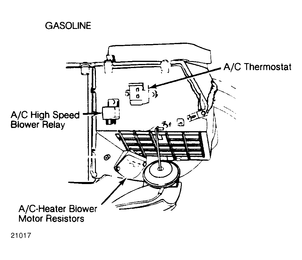 | A/C-Heater Blower Motor Resistors | Under right side of dashboard on evaporator housing. See Figure & Figure . | |