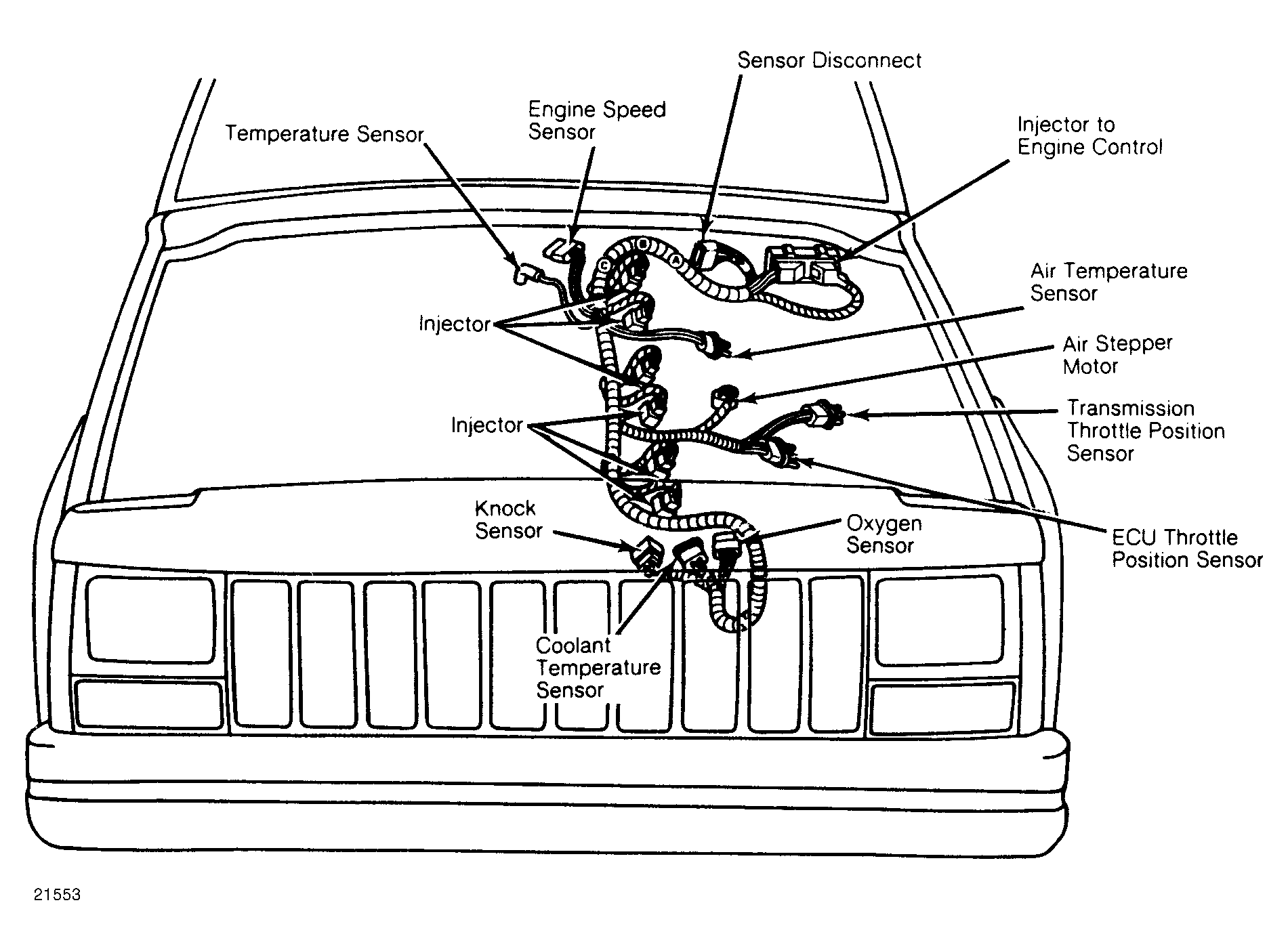 | 4-Cyl. | On center of firewall. See Figure. | |