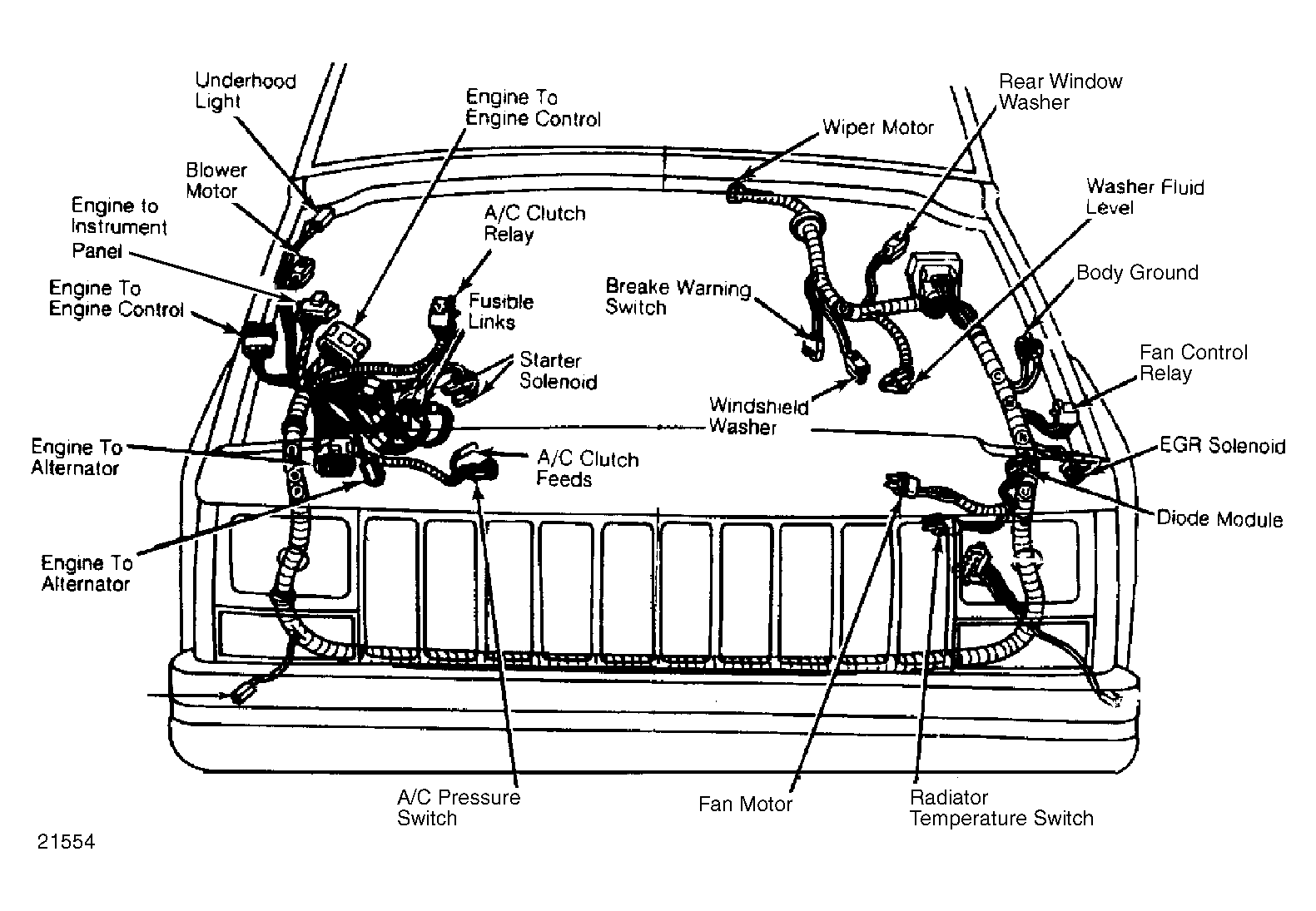 | A/C Signal Fuse | Near diode modules or above left front wheelwell. See Figure & Figure . | |