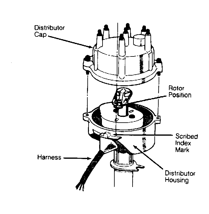 - Scribe an index mark on distributor housing, below left side of No. 1 spark plug wire post of distributor cap for reference. See Fig 1