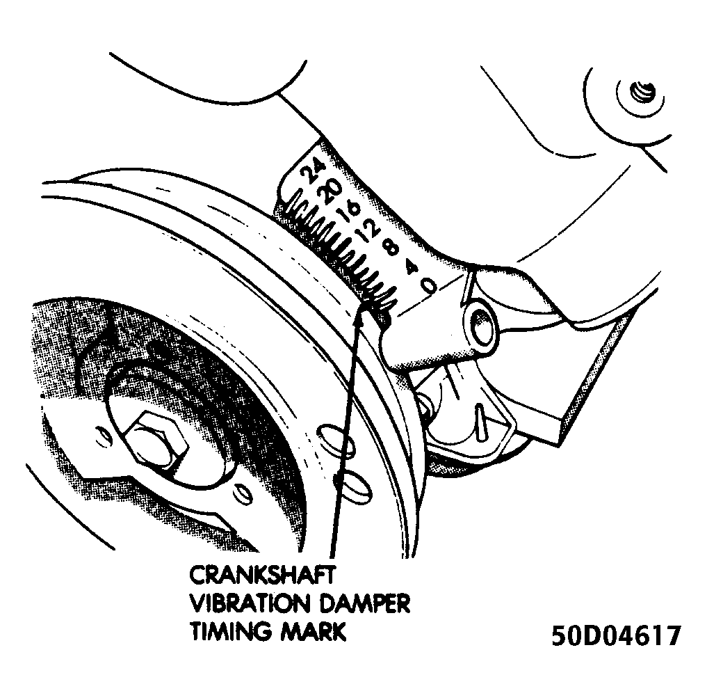 .NOTE: The timing mark is located on the edge of the vibration damper closest to the front cover.