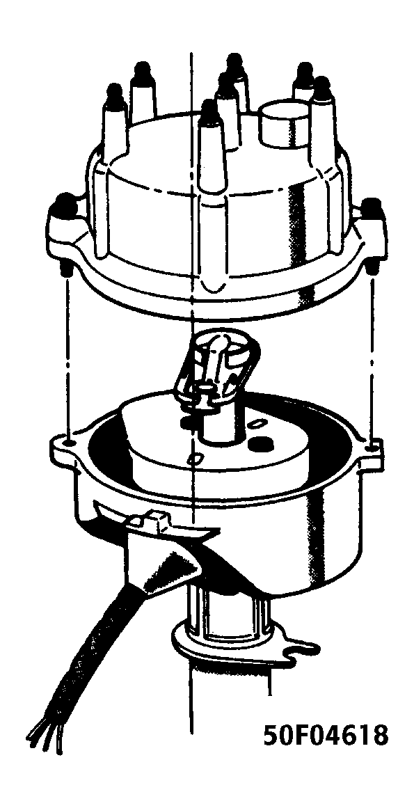 - Align the trailing edge of the rotor blade with the mark previously scribed on the distributor housing. See Fig 2 .