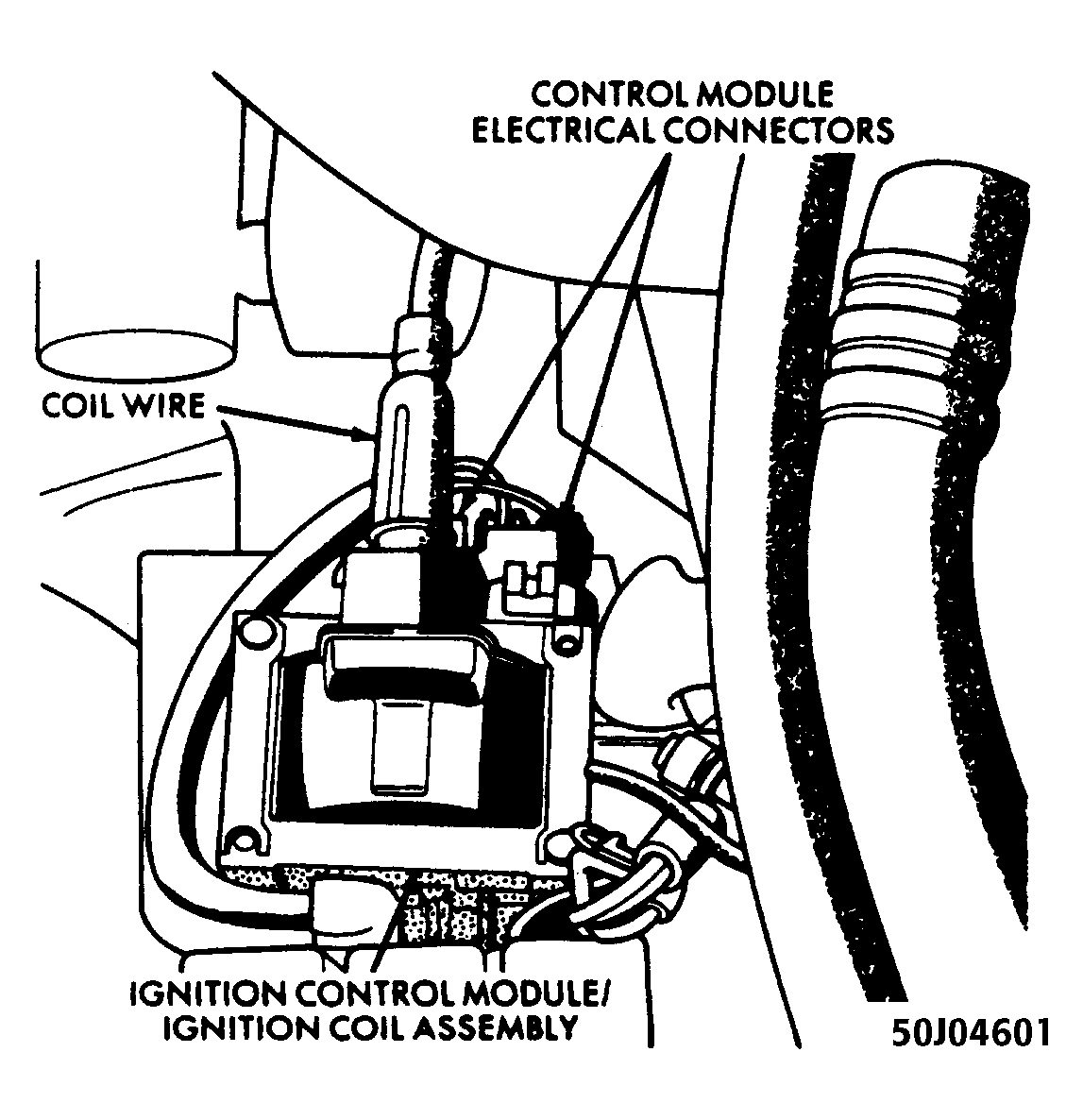 The ignition control module is mounted to the ignition coil. See Fig 1 . Based on control system inputs, the ECU triggers the ignition coil via the ignition control module. The ECU is able to advance or retard ignition timing by controlling the ignition coil through the ignition control module.