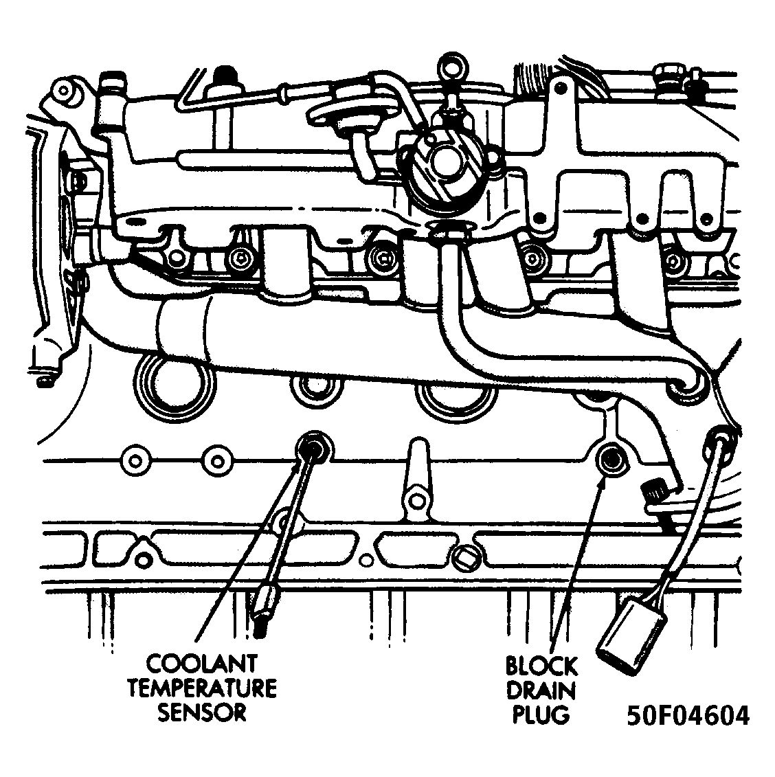 Degrees F° Degrees C° Resistance (Ohms) -40 -40 100,700 0 -18 25,000 20 -7 13,500 40 4 7,500 70 20 3,400 100 38 1,600 160 70 450 212 100 185 - If any resistance is not within the range as specified in the table, replace the coolant temperature sensor.