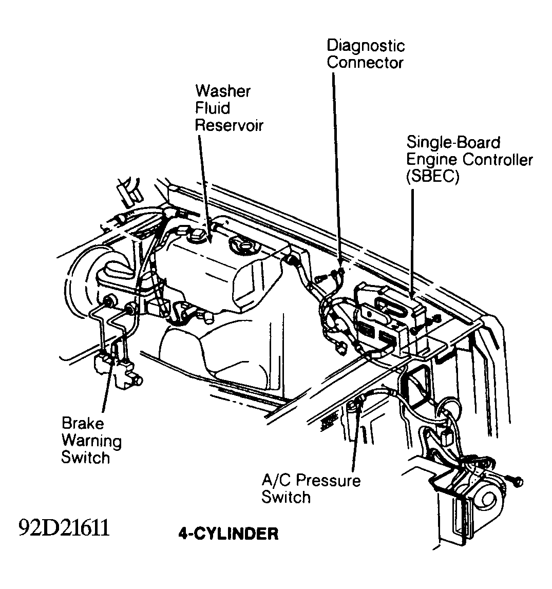 | 4-Cyl. | Left side of engine bay, on left front fender apron, behind air cleaner. See Figure . | |