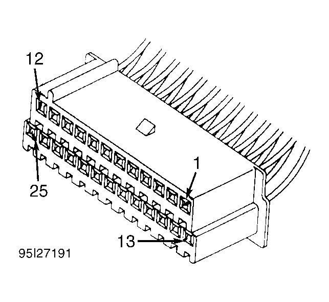 For terminal identification of body control system connectors, see Fig 1-21. Connector terminal numbers are molded into connectors. If connector terminal identification differs from what is shown in figure, use wire colors to ensure correct circuit is being tested. For wiring diagrams, see WIRING DIAGRAMS section at the end of this article.