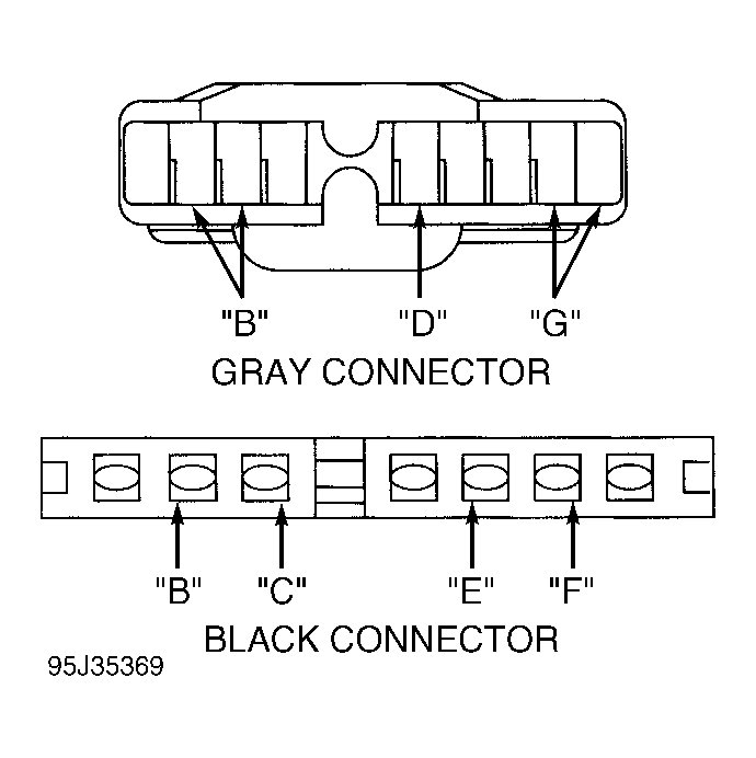 - Turn ignition switch to OFF position. Using an ohmmeter, check for continuity between intermittent wiper control module output connector terminal "G" (Black wire) and chassis ground. If no continuity exists, repair open in Black wire between connector and chassis ground. If continuity exists, go to next step.