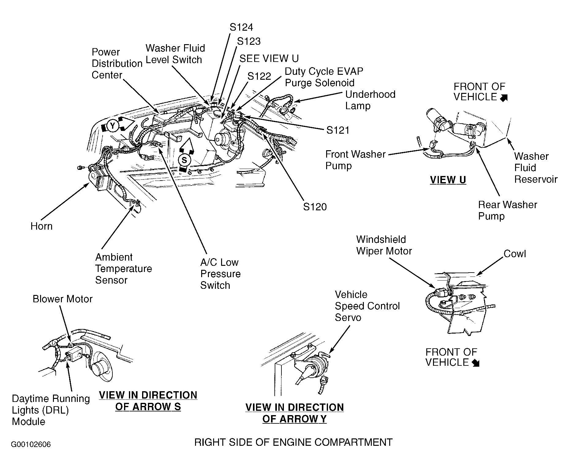 | Power Distribution Center | In right rear of engine compartment, on inner fender panel. See Figure . |