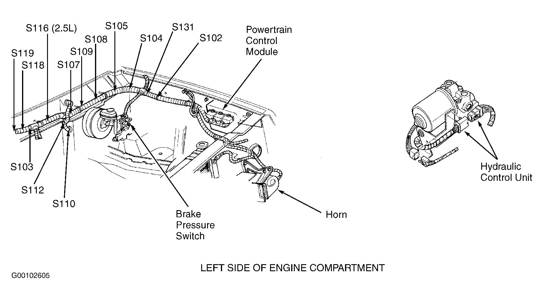 | Hydraulic Control Unit | Near brake master cylinder. See Figure . |