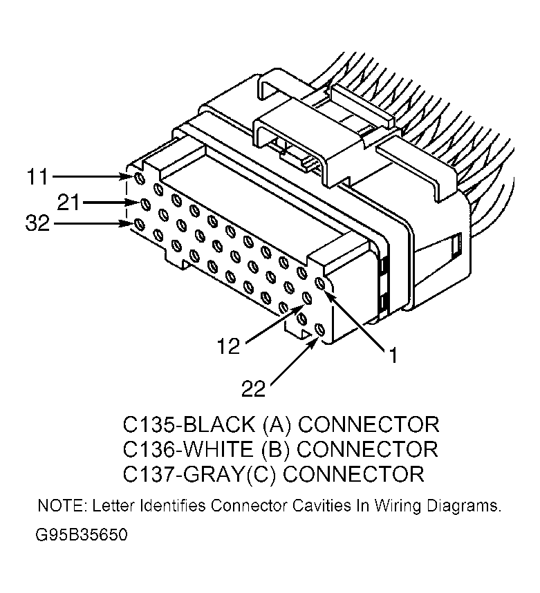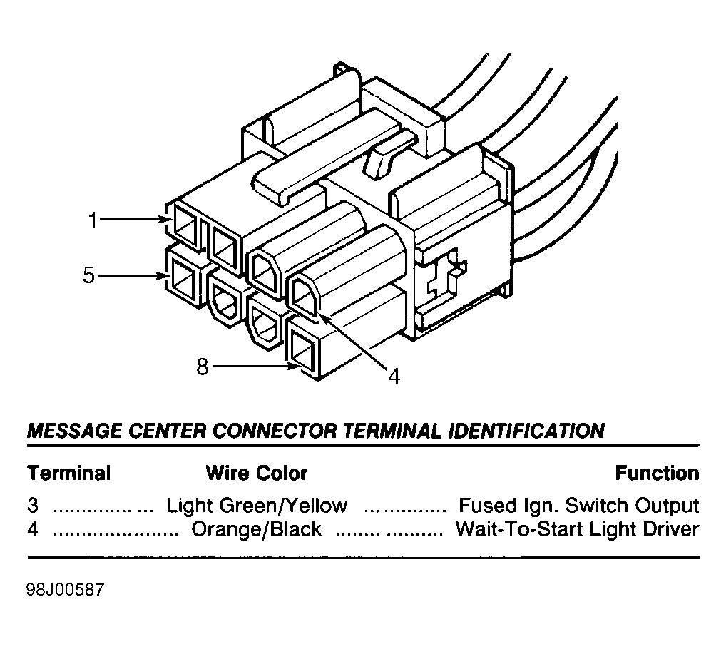 The following terminals are shown as viewed from harness side of connector. If actual connector wire colors differ from those shown in illustration, see appropriate wiring diagram in WIRING DIAGRAMS article to ensure correct circuit is being tested.