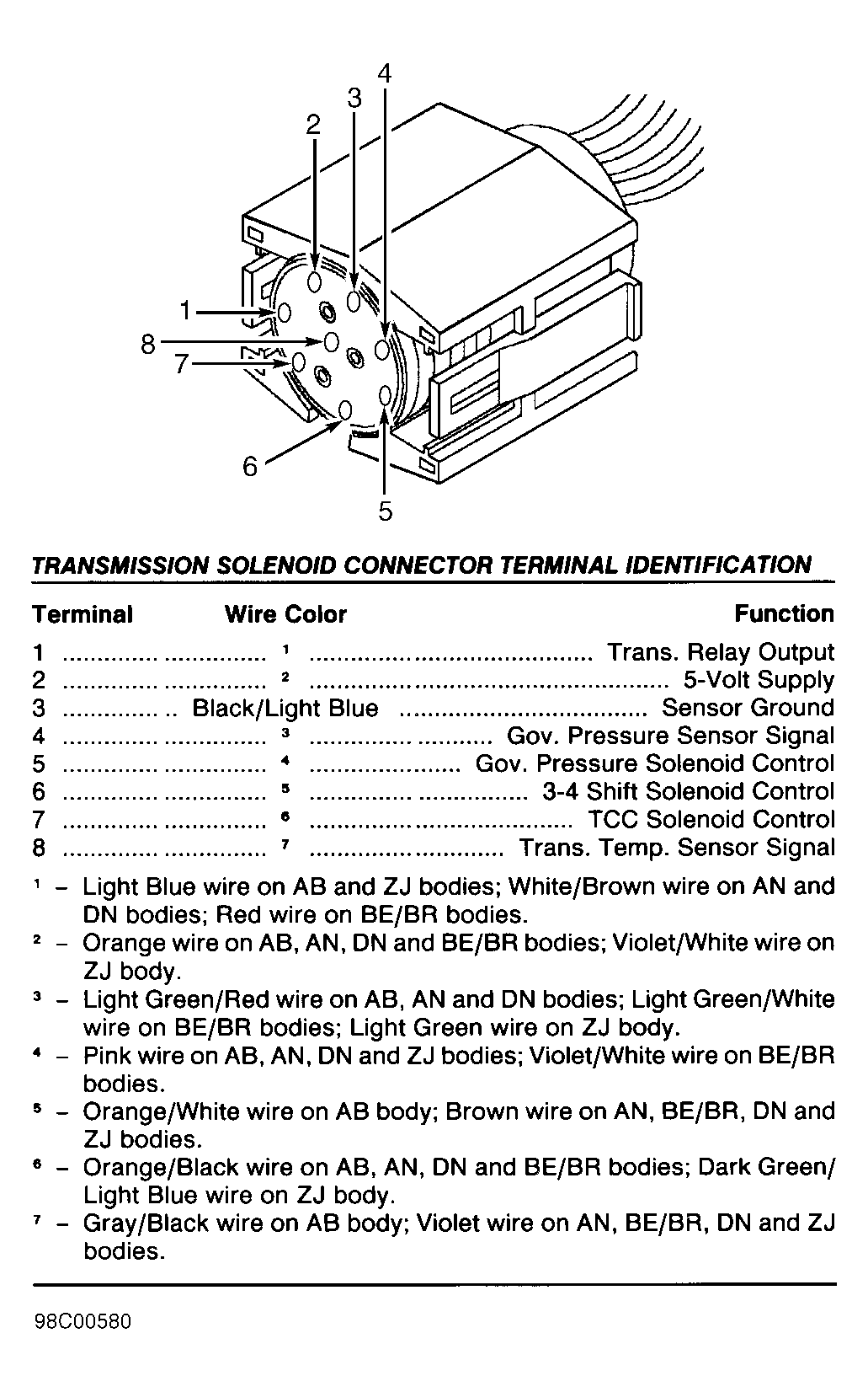 Fig 58: Identifying Torque Converter Clutch (TCC) Solenoid Connector Terminals (AB & TJ Bodies - 3-Spd A/T)