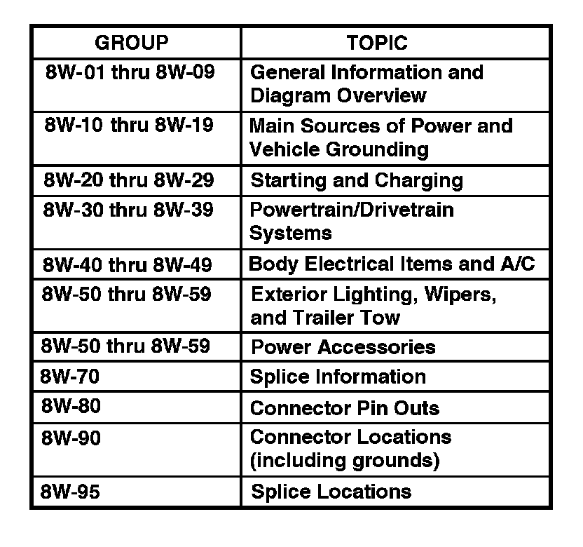 The wiring diagrams are grouped into individual sections. If a component is most likely found in a particular group, it will be shown complete (all wires, connectors, and pins) within that group. For example, the Auto Shut Down Relay is most likely to be found in Group 30, so it is shown there complete. It can, however, be shown partially in another group if it contains some associated wiring.