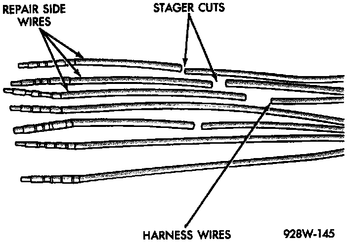 4. Stagger cut all wires on the harness side at 1/2 inch intervals.