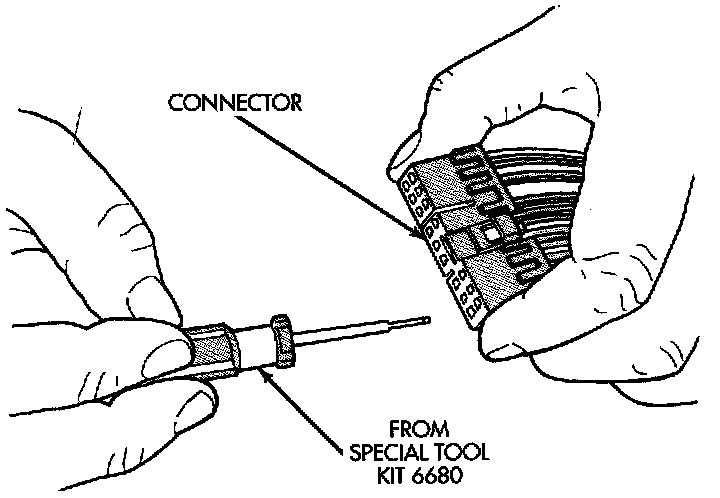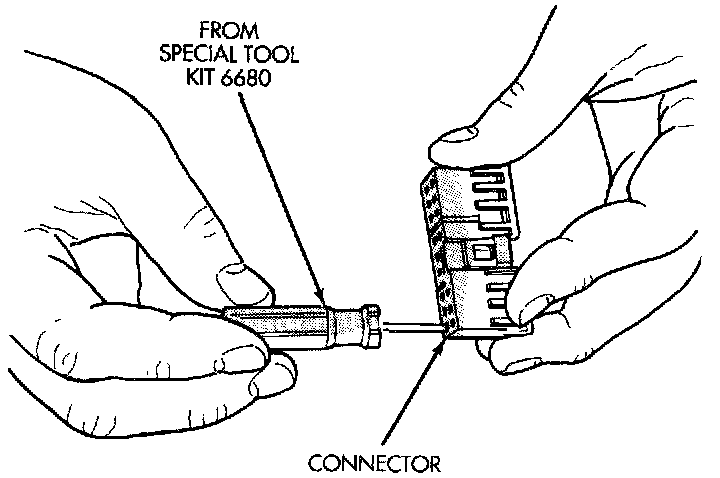 4. Position the connector locking finger away from the terminal using the proper pick from Special Tool Kit 6680. Pull on the wire to remove the terminal from the connector.