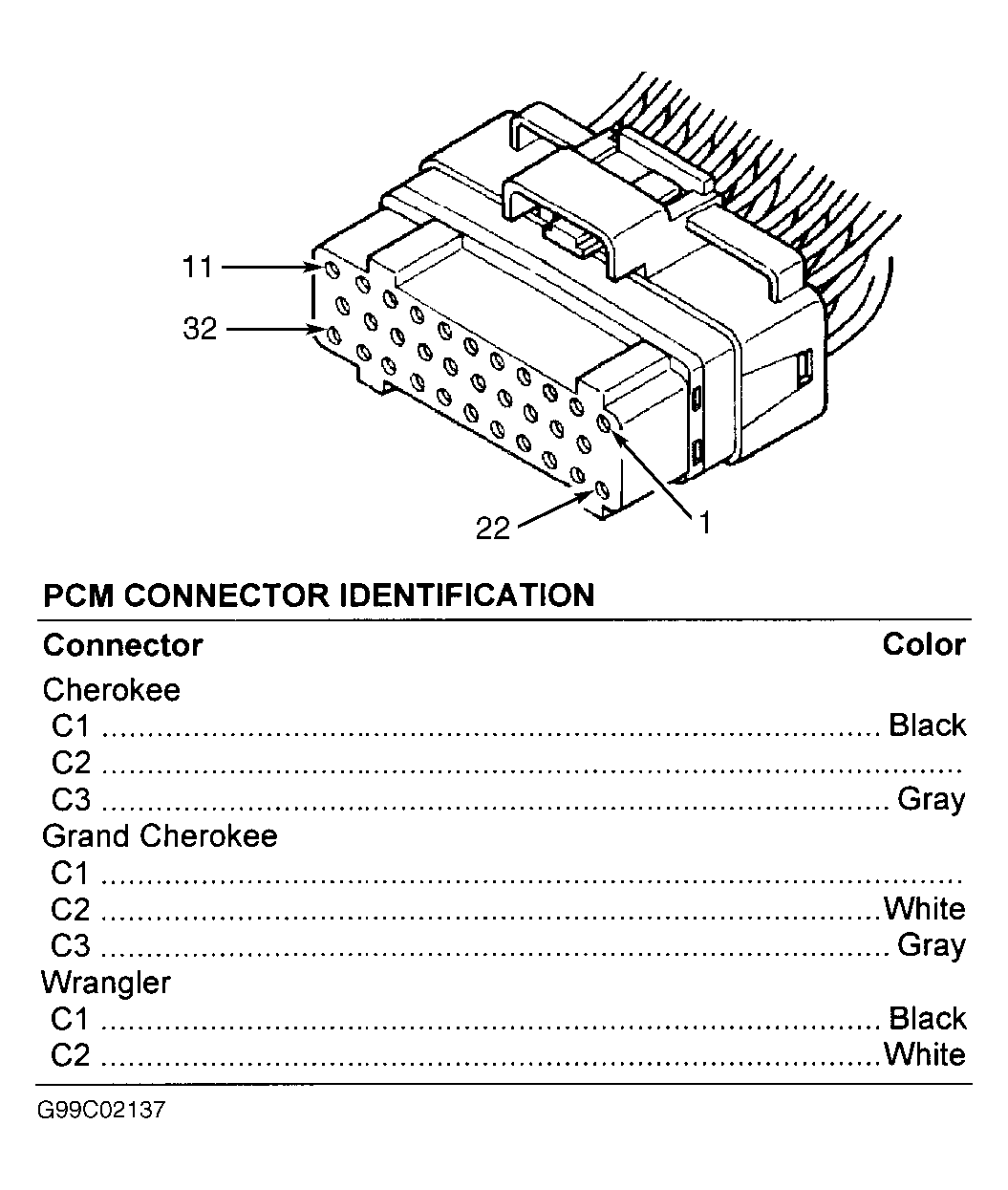 Home >> Jeep >> 1999 >> Cherokee Limited, 2.5 P >> Repair and Diagnosis >> Body & Frame >> Body, Cab Control Systems >> Body Control Computer - Introduction >> Connector Identification