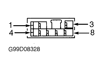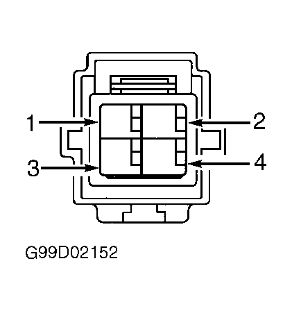 Fig 14: Identifying Driver's Rear Power Window Switch Connector Terminals (Grand Cherokee)