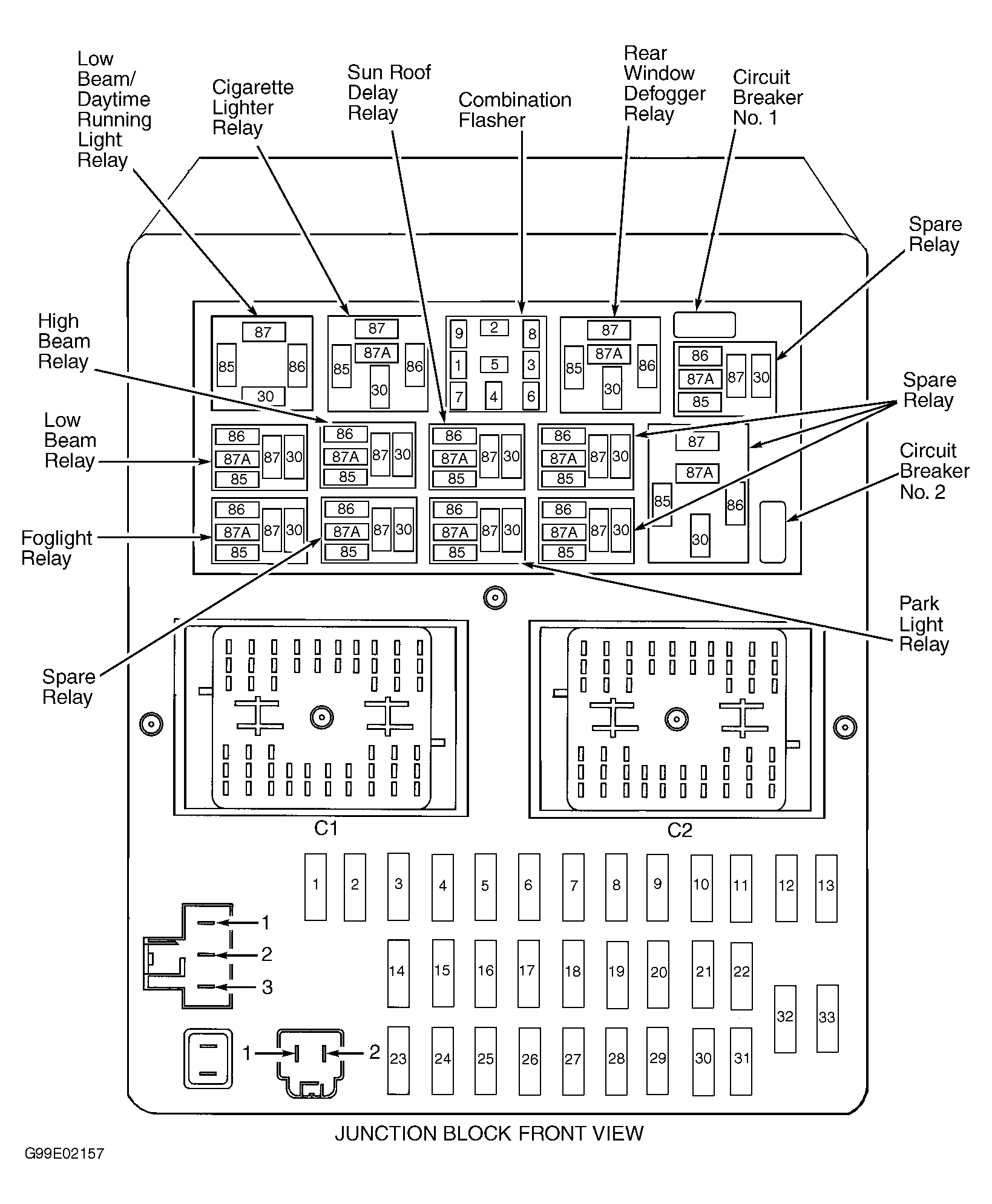 Fig 20: Identifying Junction Block "C1", "C2" & "C3" Connector Terminals (Grand Cherokee)