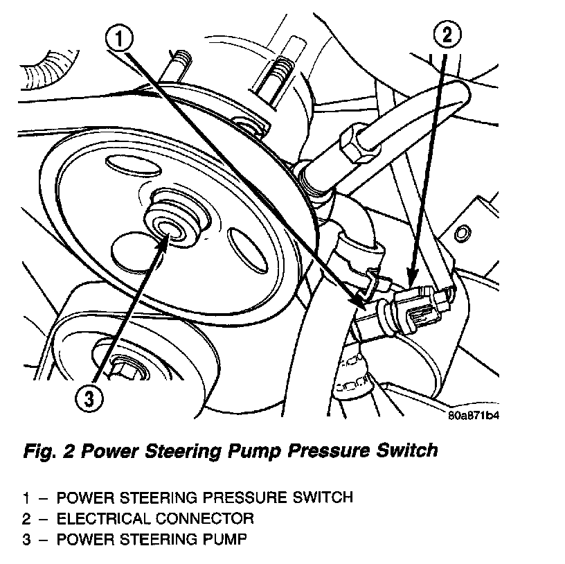 A pressure sensing switch is included in the power steering system (mounted on the high pressure line). This switch will be used only on vehicles equipped with a 2.5L engine and power steering.