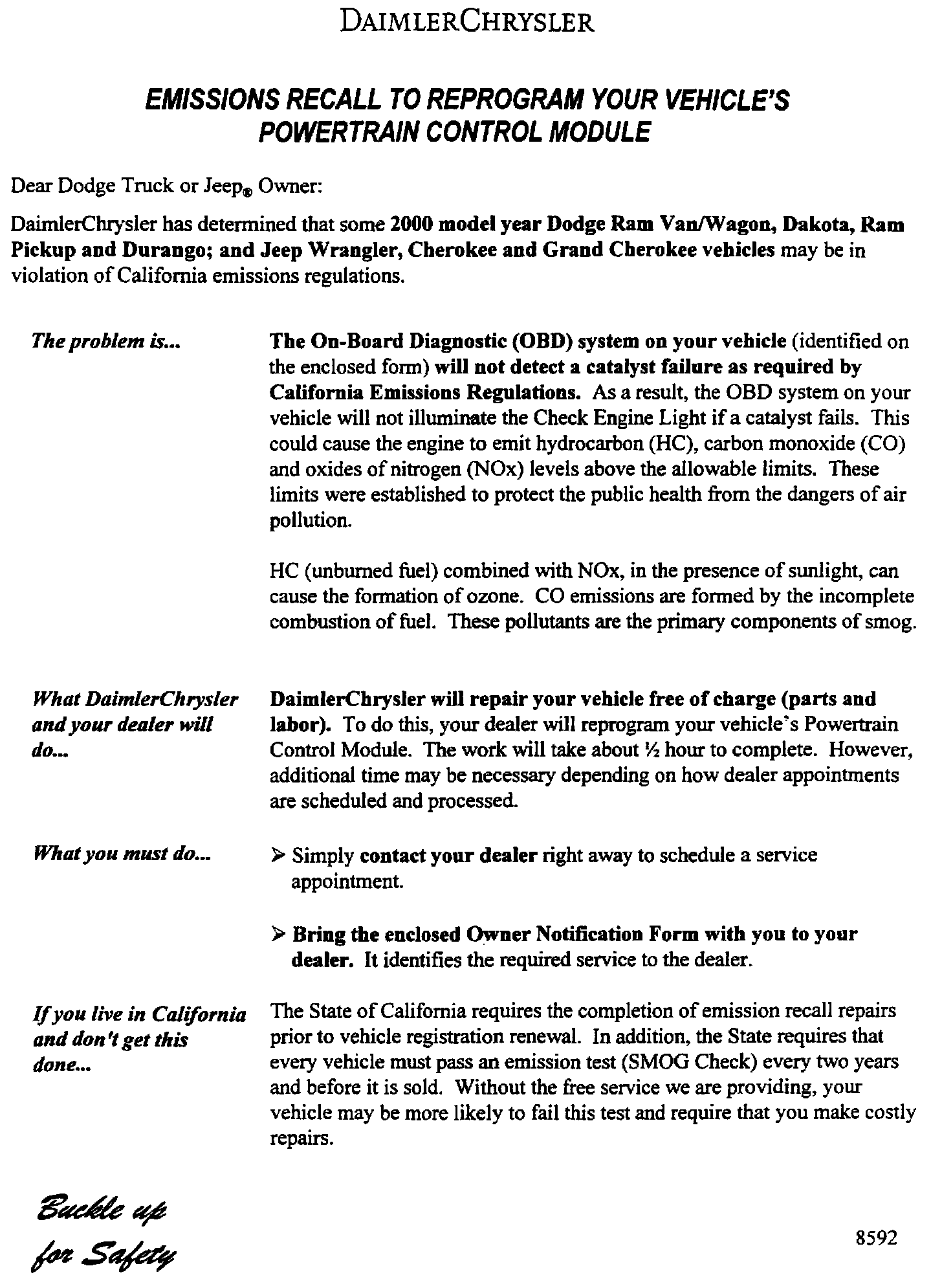 Recall - Reprogram PCM/Catalyst Faults Go Undetected