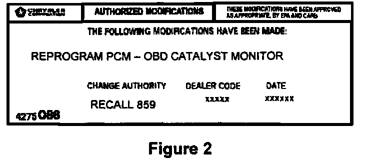 Type or print (with a ballpoint pen) the recall number, dealer code and date on the Authorized Modifications Label (Figure 2). Then attach the label near the VECI label.