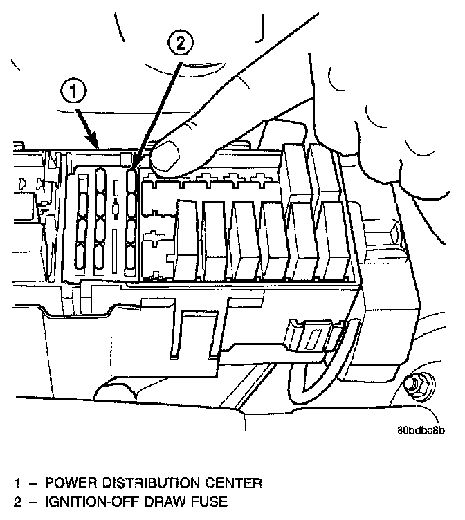 All vehicles are equipped with an Ignition-Off Draw (IOD) fuse that is removed from its cavity in the Power Distribution Center (PDC) when the vehicle is shipped from the factory. Dealer personnel are to remove the IOD fuse from the storage location and install it into PDC fuse cavity 16 as part of the preparation procedures performed just prior to new vehicle delivery.