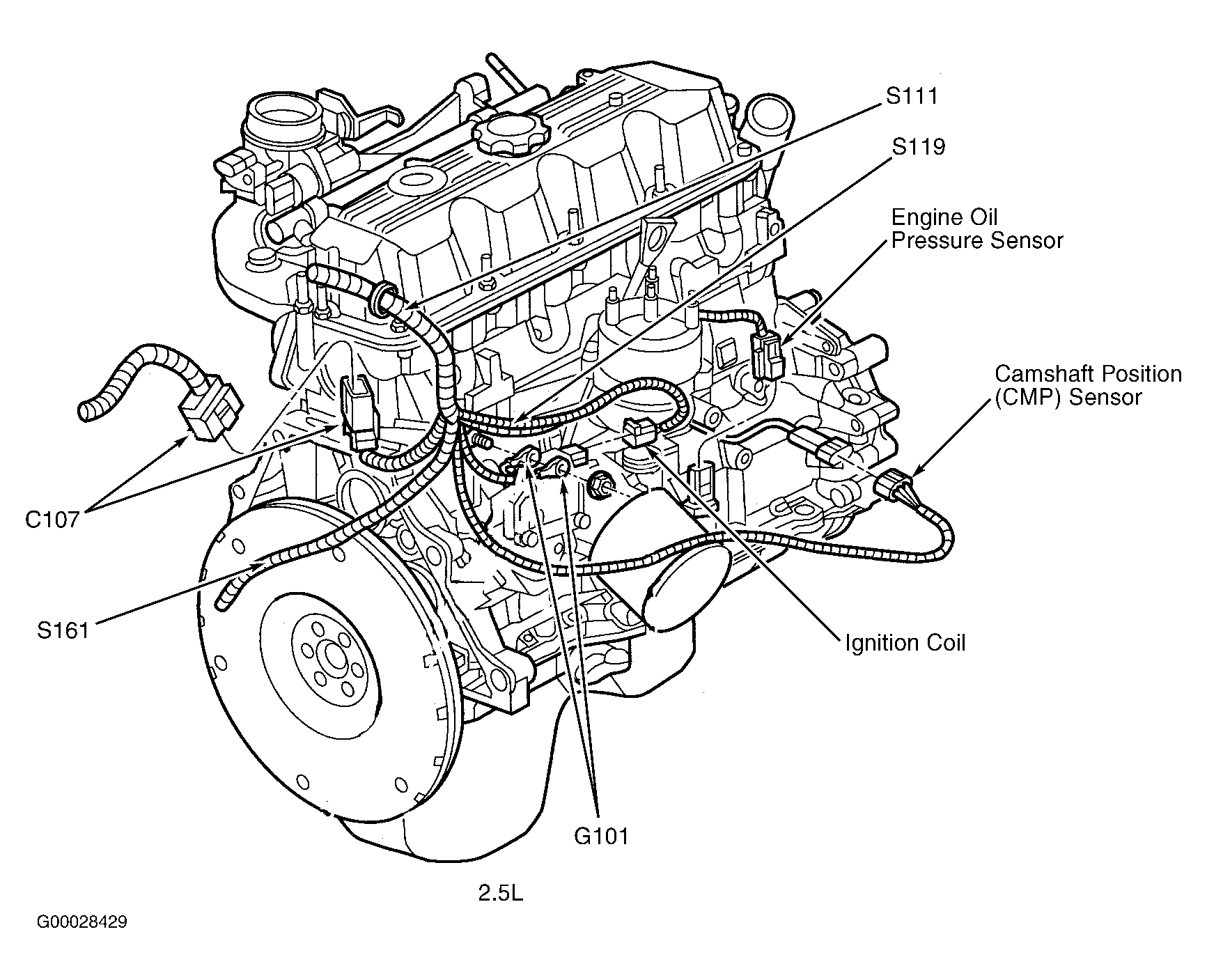 | S119 (2.5L) | In breakout for engine oil pressure sensor. See Figure. |