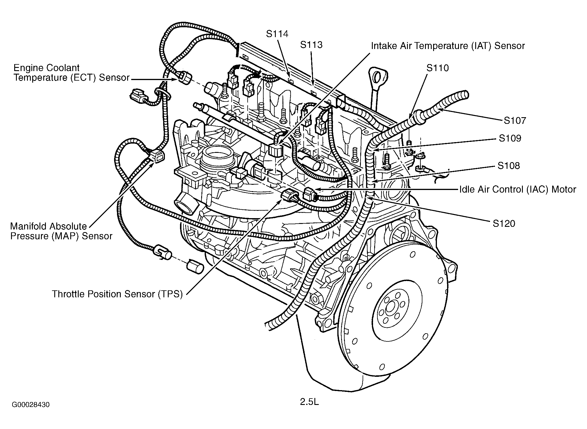 | S115 (4.0L) | Near breakout for idle air control motor. |