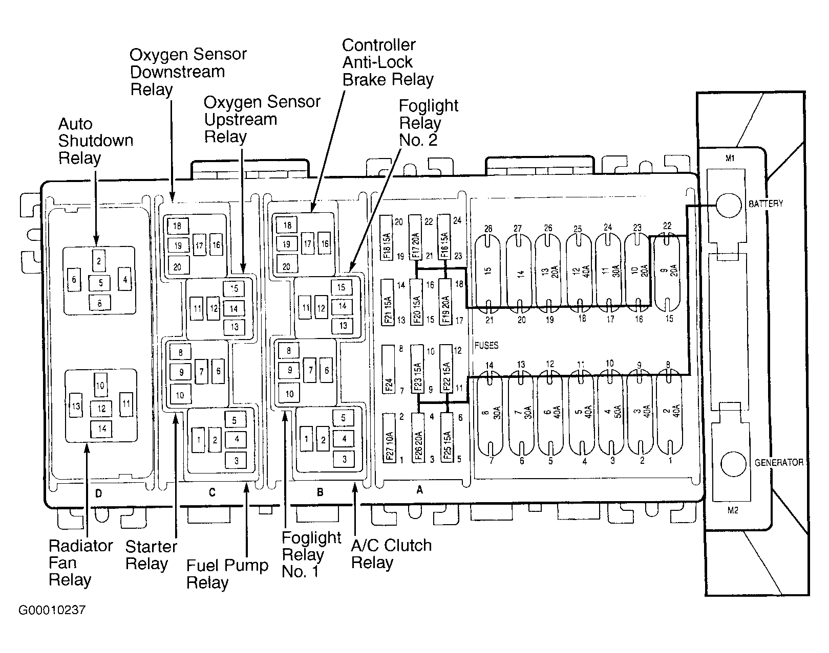 - Remove fuel pump relay from Power Distribution Center (PDC). PDC is located in right side of engine compartment, next to battery. See Figure
