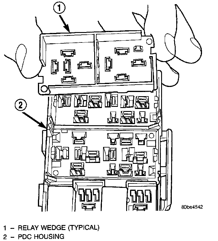 4. From the top of the PDC housing, remove the relay wedge from the PDC relay cassette.