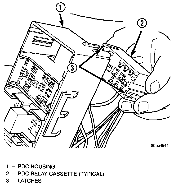 CAUTION: Do not remove the wiring and terminals from the terminal cavities of the faulty PDC relay cassette at this time. Refer to the Assembly procedure that follows for the proper procedures for transferring the wiring and terminals to the replacement PDC relay cassette.