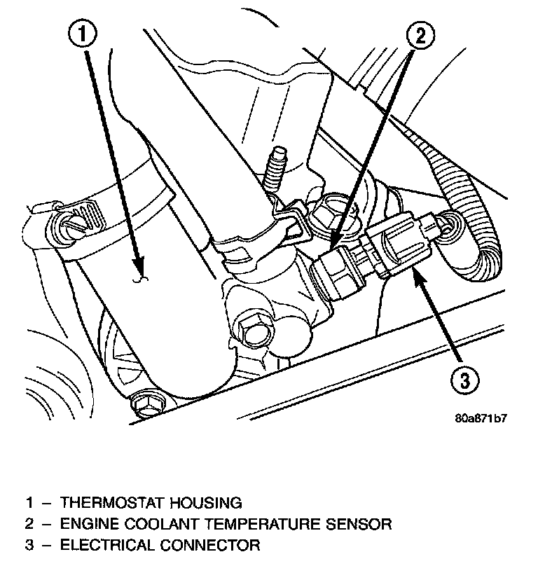 The Engine Coolant Temperature (ECT) sensor is installed in the thermostat housing.